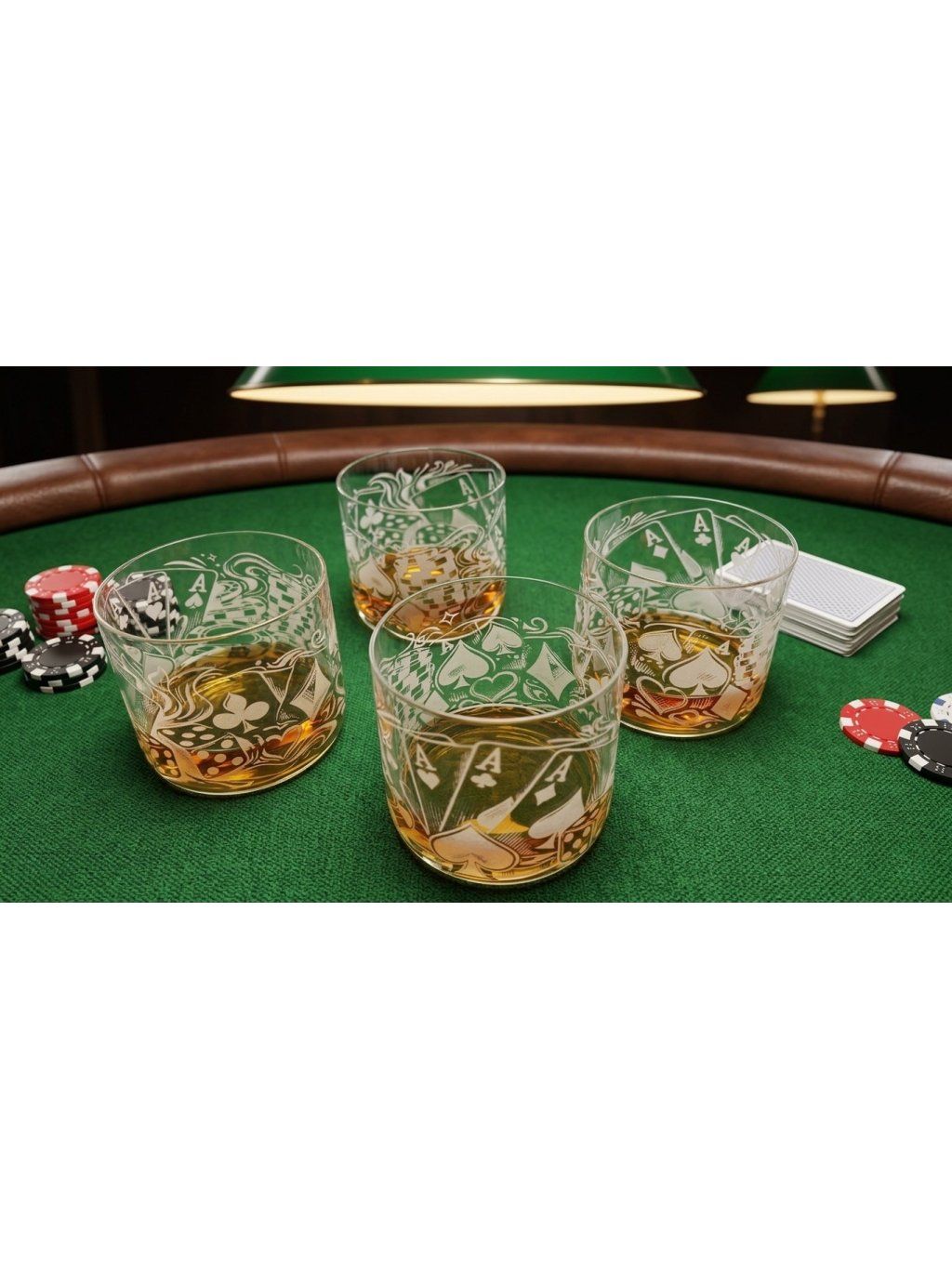 Design inspirovaný světem kasina dodává sklenicím luxusní a hravý charakter, který ocení nejen milovníci whisky, ale i ti, kdo hledají nevšední doplněk do domácího baru.