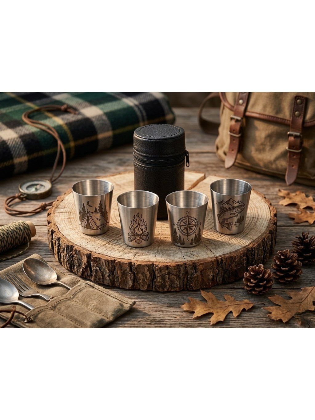 Praktická a stylová sada čtyř nerezových panáků (tzv. „štamprdlí“) je ideální na cesty, výlety i posezení s přáteli. Díky kompaktním rozměrům a elegantnímu koženému pouzdru máte vše vždy pohromadě a připravené k použití.